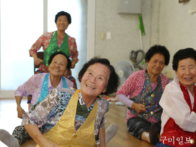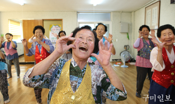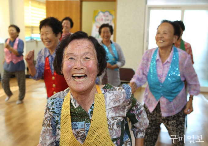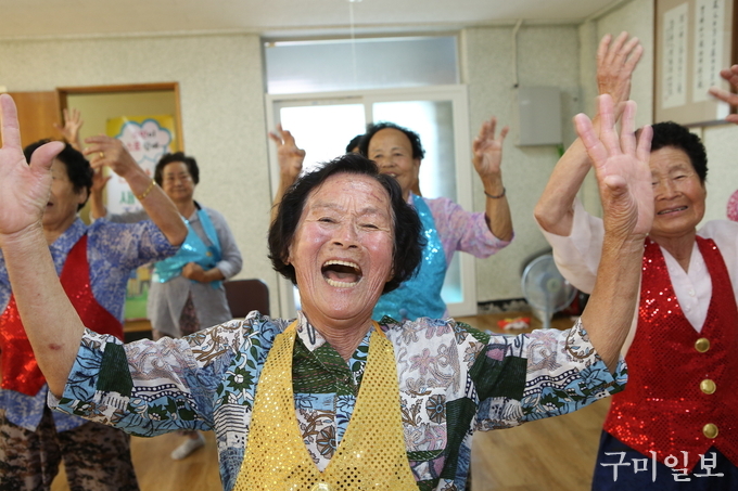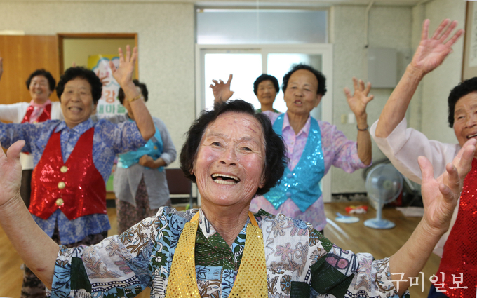 중복인 7월 27일(금) 석적읍 망정1리 마을회관에서 ‘건강새마을 조성사업’의 일환으로 열린 댄스교실’에서 오도환(84세, 망정1리) 어르신이 댄스 삼매경에 빠져있다.