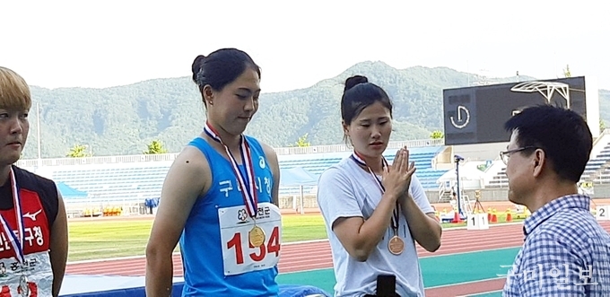 구미시(시장 장세용) 육상팀(감독 권순영)은 지난 7월 26일(목) 강원 홍천에서 폐막된 2018 홍천 전국실업육상대회에서 필드경기 부문 창던지기에서 허효정(여, 23) 선수가 우승을, 포환던지기에서 손태호(남, 28) 선수가 3위를 차지하였다.