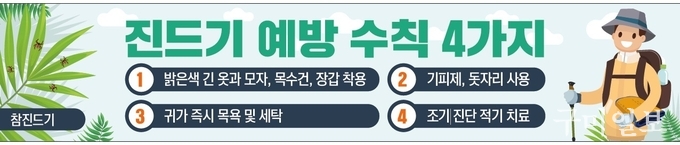 야외활동 후 2주 이내에 고열(38-40도), 소화기증상(오심, 구토, 설사 등)이 있을 경우 즉시 의료기관을 방문하도록 강조했다.