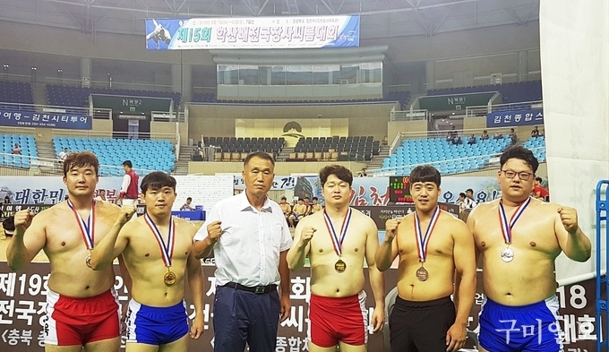 구미시(시장 장세용) 씨름팀은 김천 실내체육관에서 열린 제15회 학산배 전국장사씨름대회에 참가해 용장급 유영도(34), 소장급 정재욱(31) 선수가 각각 1위를 차지했다.