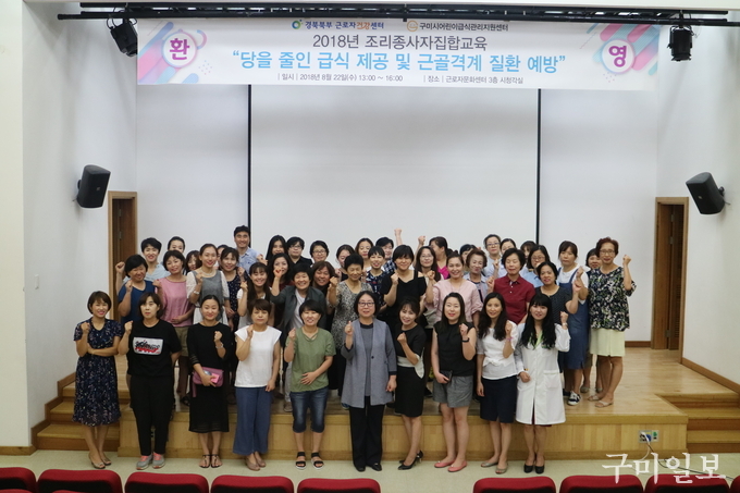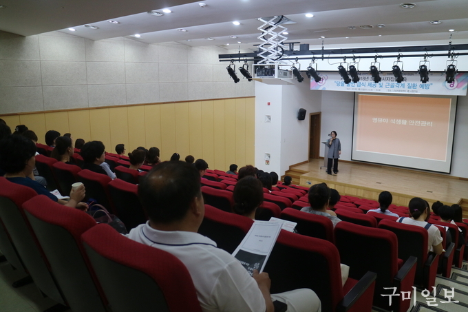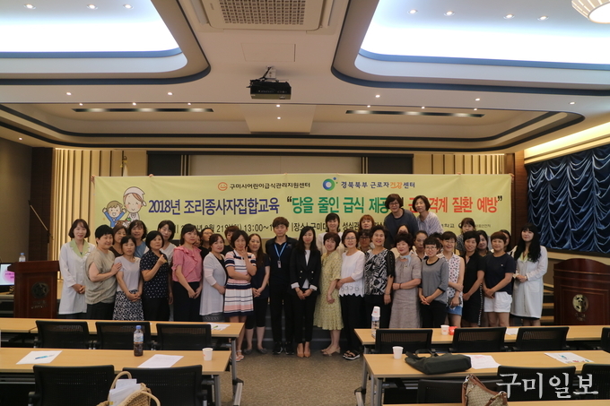 구미시(시장 장세용)에서 100인 미만의 어린이 급식시설의 영양·위생관리 지원을 목적으로 구미대학교(총장 정창주)에 위탁운영 중인 구미시어린이급식관리지원센터(센터장 김귀순)는 어린이 급식시설 조리종사자 100개소 140여명을 대상으로 2018년 8월 21일(화) ~ 8월 22일(수) 13:00 ~ 16:00 구미대학교와 근로자문화센터 시청각홀에서 보육시설 조리종사자의 집합교육을 양일간 실시하였다.