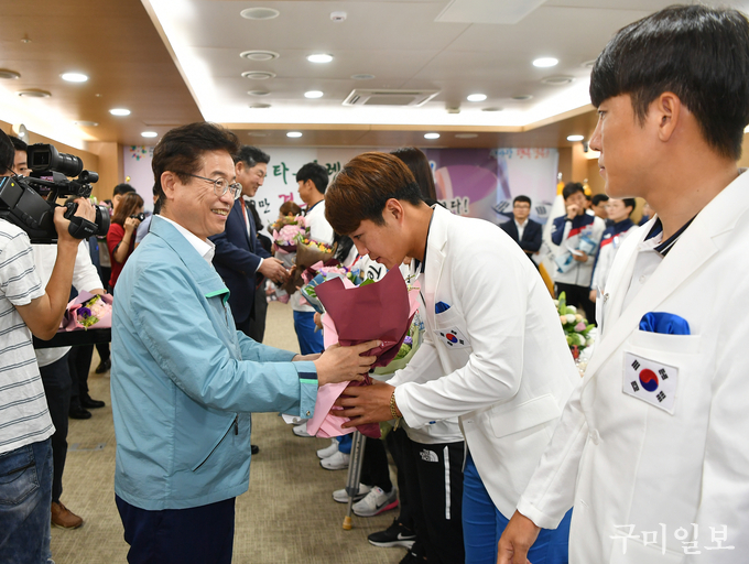 경상북도는 9월 6일(목) 도청 회의실에서 ‘2018 자카르타-팔렘방 아시안게임’에서 불굴의 도전과 투혼으로 대활약을 펼쳐 국민들에게 감동을 주고 개선한 경북도 소속 메달리스트들을 축하하고 격려하는 환영식을 가졌다.