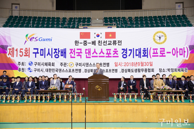 구미시(시장 장세용)는 지난 9월 30일(일) 박정희체육관에서 『제15회 구미시장배 전국댄스스포츠경기대회』를 개최했다.