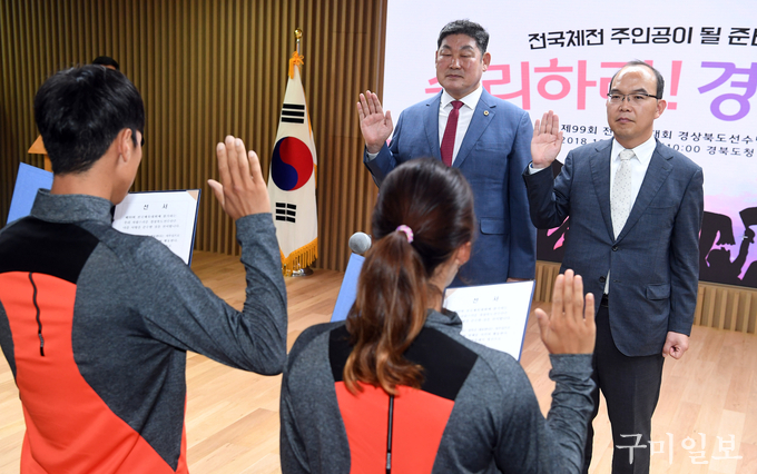 경상북도는 10월 4일(목) 도청 다목적홀에서 오는 10월 12일부터 18일까지 전라북도 일원에서 열리는 ‘제99회 전국체육대회’ 출전을 앞두고 선수단 결단식을 갖고 필승의 결의를 다졌다.