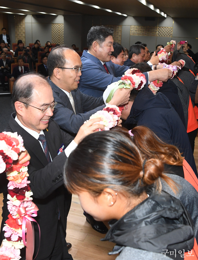 결단식에는 윤종진 경북도 행정부지사와 장경식 경북도의회 의장, 전우홍 경북도교육청 부교육감, 김상운 경북지방경찰청장 등 도내 기관단체장과 후원업체 대표가 참석해 선수단을 격려했다.