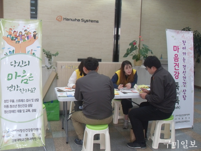 구미보건소(소장 구건회) 정신건강복지센터(센터장 김희숙)는 지난 3월부터 10월까지 스트레스 고위험군 (사업장 근로자, 산전후우울 대상자, 독거노인, 지역사회 취약계층)을 대상으로 “마음건강 톡(talk)톡(talk)” 찾아가는 정신건강상담을 실시했다.