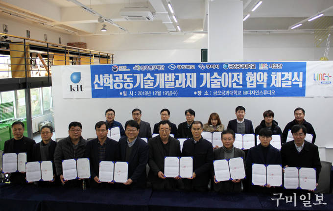 금오공과대학교(총장 이상철)가 12월 19일(수) 교내 kit디자인스튜디오에서 ‘2018 산학공동 기술개발과제 기술이전 협약식’을 가졌다.
