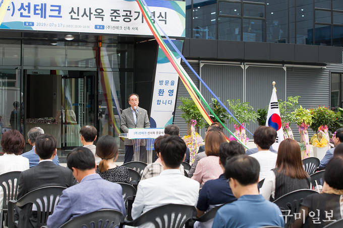 구미시 구미국가4산업단지에 소재한 ㈜선테크(대표 한병삼)은 7월 17일(수) 산동면 해마루공원로에 사업장을 확장 이전하여 『신사옥 준공 기념식』을 개최했다.