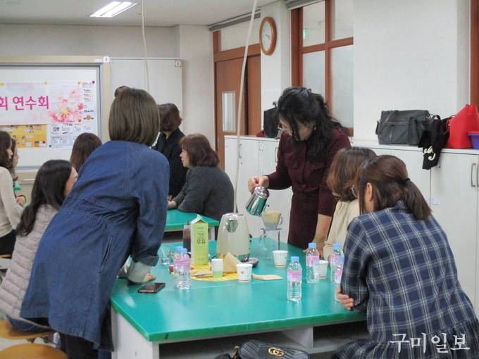 구미 옥계동부초등학교(교장 양춘희)는 11월 12일(화) 본교 과학실에서 5, 6학년 학부모 20명이 참석한 가운데 ‘학부모 핸드드립 체험활동’ 연수를 실시하였다.