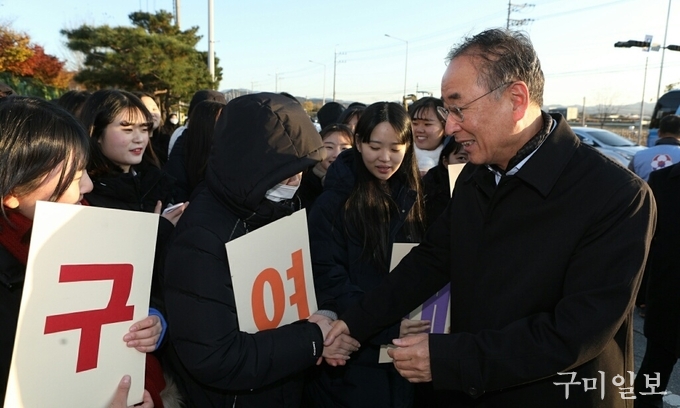 이날 장세용 구미시장은 이른 아침부터 금오여고와 구미고를 방문해 입실하는 수험생들을 격려하고 함께한 학부모와 교통정리 및 차 제공을 위해 수고하는 봉사단체 회원들에게 감사의 뜻을 전하며 격려하였다.