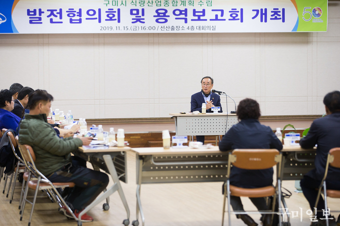 구미시는 11월 15일(금) 선산출장소 4층 회의실에서 시장, 시의원, 농협조합장, 농업인 단체장 등 30여명이 참석한 가운데 구미시식량산업종합계획(5개년) 발전협의회 및 용역 최종보고회를 개최하였다.