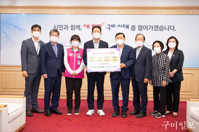 지난 8월 중순 SK실트론(주)(대표이사 장용호)에서 “지역 쌀(米)리Go” 캠페인을 통하여 직원들의 자발적인 기부 참여로 마련한 기금 등을 통하여 관내 저소득 독거 어르신과 지역 농가지원을 위해 구미쌀(일선정품) 3천포를 기탁하였다. 이를 시작으로 8월말 구미농업협동조합(조합장 김영태)의 임직원들로 구성된 구미농협 나눔회에서 성금 500만원, 금오산 법성사 법운사회복지회(회장 김문자)에서 쌀 251포 및 덴탈마스크 10만매를 기탁하였다. 또 지난 3월 복지업무협약을 체결한 사단법인 한국나눔연맹(사무총장 안천웅)에서 쌀 500포, 라면 500박스, 김치 500박스, KF94마스크 1만매를 전달하여 관내 저소득층 및 사회복지시설로 전달되었다.