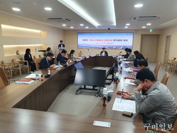 구미시국제화추진협의회(위원장 김호섭)는 지난 10월 13일(금) 시청 국제통상협력실에서 위원 13명이 참석한 가운데 2023년도 구미시국제화추진협의회 정기 회의를 열었다.