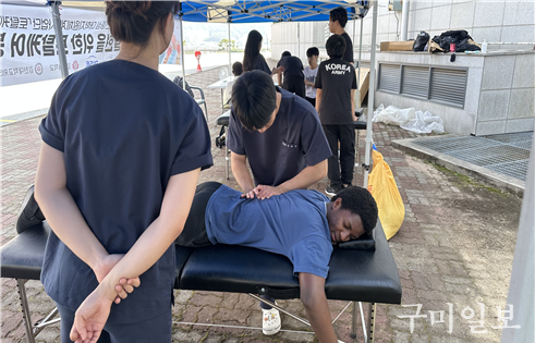 프로그램은 10월 1일 오후 12시부터 6시까지 진행되었으며, 김천대학교 물리치료학과 학생들이 직접 참여해 외국인 유학생들에게 치료적 마사지, 스포츠 테이핑을 시연하고 체험 기회를 제공했다.