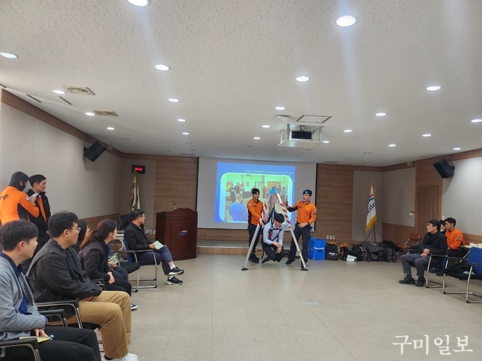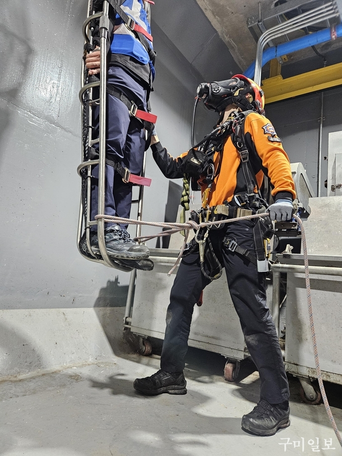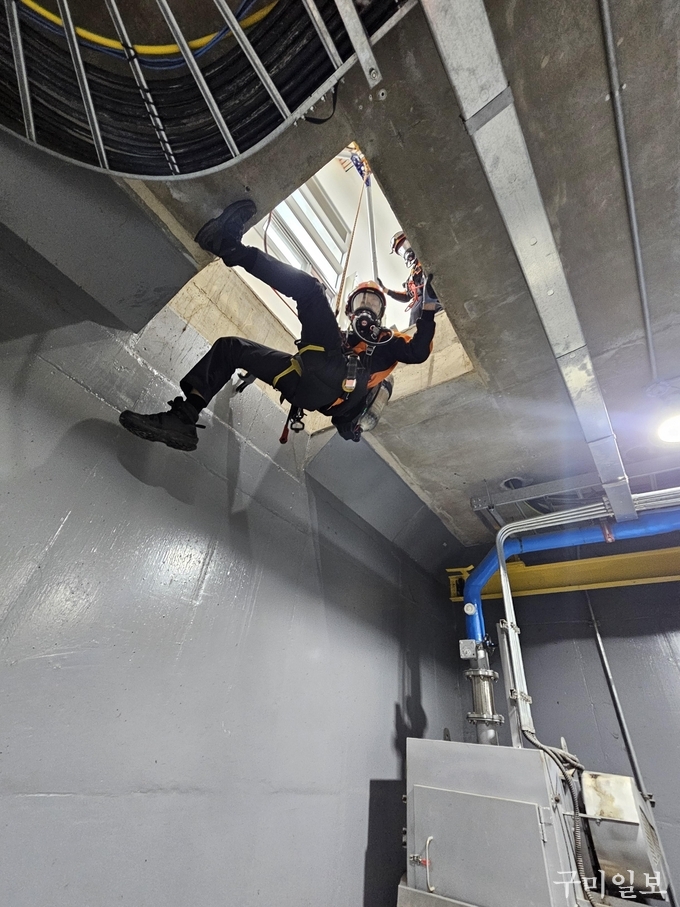 구미소방서 119구조급센터는 2025년 10월 20일(월) 유해화학물질 누출사고 발생 시 관계기관의 최초 신속대응 능력강화와 구조대원의 밀폐공간 유해가스 흡입사고 및 대응능력 향상을 위하여 밀폐공간 질식사고대비 인명구조 합동교육ㆍ훈련을 실시하였다.