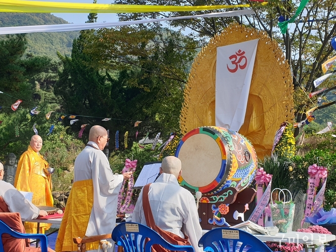 주지해월스님은 인사말에서 “오늘 아미타대불 점안식을 통해 신도와 지역주민, 모든 중생이 마음의 평안을 얻고, 사찰의 전통과 신심을 함께이어가는 귀한 시간이 되길 바란다.”고 말했다.