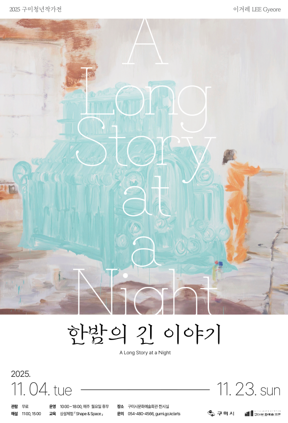 구미시문화예술회관은 지역 청년예술인의 창작 활동을 지원하고 새로운 예술적 가능성을 발굴하기 위해 매년 《구미청년작가전》을 개최하고 있다. 2025년 선정 작가는 이겨레(구미, 1987~)로, 11월 4일부터 23일까지 구미시문화예술회관 전시실에서 개인전 《한밤의 긴 이야기》를 선보인다.