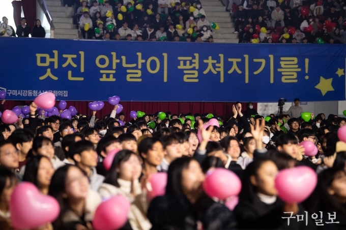 김장호 구미시장은 “오늘 축제가 그동안의 학업과 입시 스트레스를 잠시 내려놓고 새로운 시작을 앞둔 청소년들에게 힘이 되길 바란다”며 “여러분이 지역의 미래를 이끌어 갈 청년 인재로 성장하길 기대하며, 앞으로의 길을 진심으로 응원한다”고 말했다.