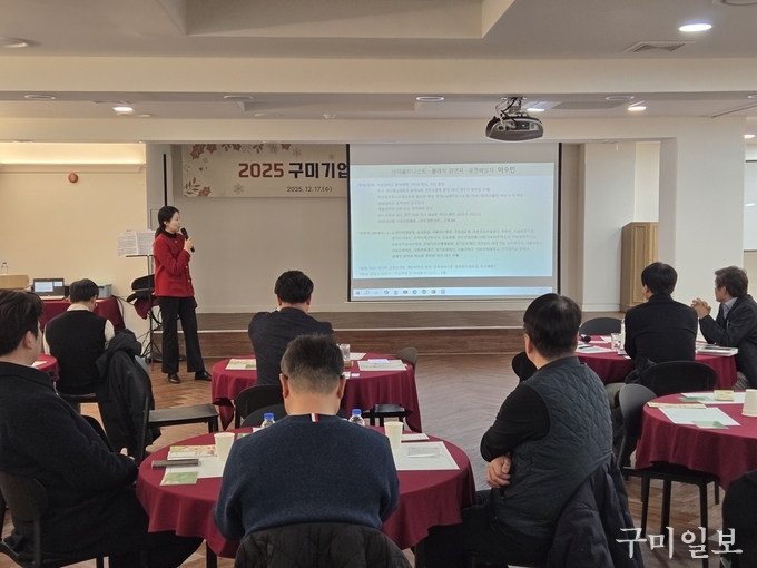 구미상공회의소(회장 윤재호)는 12월 17일(수) 오후 3시, 한화시스템 및 스테이더공단 호텔에서 윤재호 회장, 임정호 구미기업발전협의회 회장을 비롯한 협의회 회원, 구미시·구미상의·금오공대 등을 비롯한 유관기관 관계자 등 40여명이 참석한 가운데 ‘2025 구미기업발전협의회 송년회’를 개최하였다.