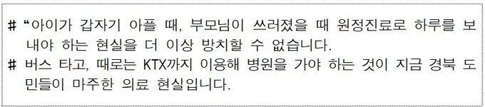 아울러 정부가 추진 중인 ‘지역·필수·공공의료 확충’국정과제의 취지에 맞춰 정치권과 중앙정부가 뜻을 모아 경북 국립의대 설립을 적극 추진해 달라고 당부했다.