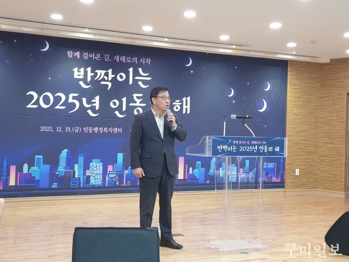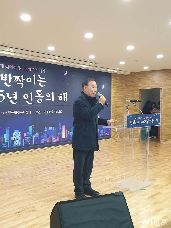 이경호 인동동장은 "올 한해 인동동의 발전을 위해 물심양면으로 노력해주신 기관·단체 회원분들께 감사드리며, 새해에는 더욱더 주민의 목소리에 귀 기울이는 주민중심의 행정을 실천해 나가겠다."고 전했다.