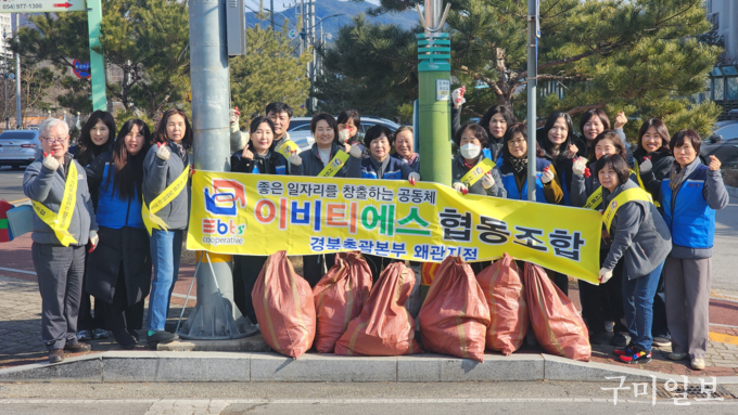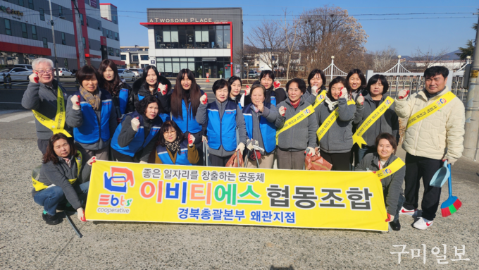 이비티에스 협동조합 경북총괄본부 왜관지국(지국장 김정호) 조합원들이 최근 왜관 읍내 일대에서 환경정화 봉사활동을 펼치며 지역사회에 따뜻한 나눔을 실천했다.