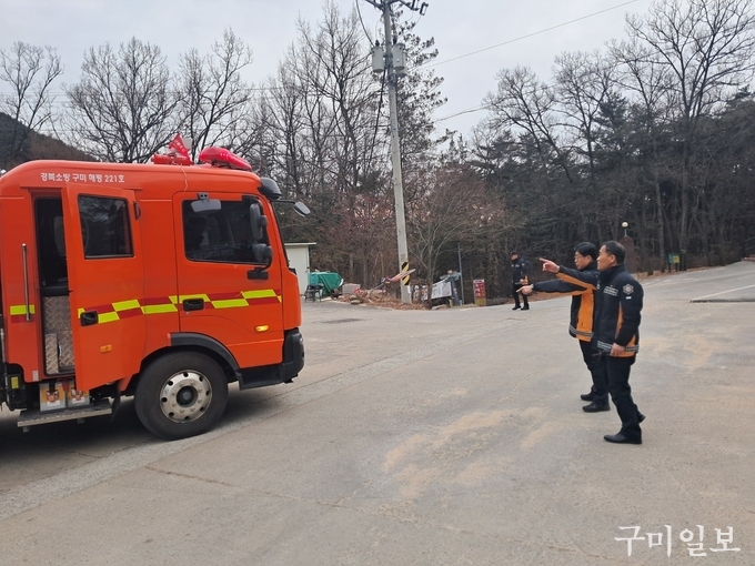 구미소방서(서장 조유현)는 1월 26일 해평면 송곡리, 창림리 일원에서 산불 예방 및 신속한 초기 대응태세 강화를 위해 서장이 직접 펌프차에 동승하는 예방순찰을 실시하였다.