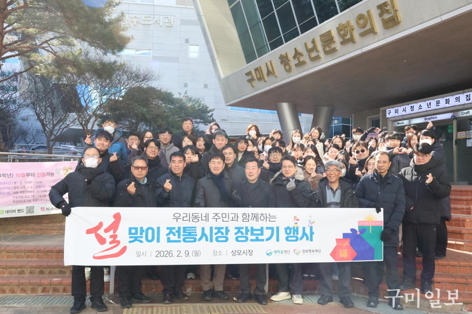 새마을재단(대표 이영석)과 경북행복재단(대표 정재훈)은 2월 9일, 양 기관 임직원이 함께 구미시 상모 월요장에서 ‘설맞이 전통시장 장보기 행사’를 개최했다. 이번 행사는 민족 대명절인 설을 앞두고 지역 상권을 살리고 전통시장 이용을 활성화하기 위해 마련됐다.