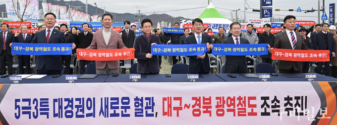 대구·경북 6개 지자체장은 2월 27일(금) 오후 2시, ‘대구~경북 광역철도 건설 조기 착공 공동 건의문 서명식’을 개최했다.