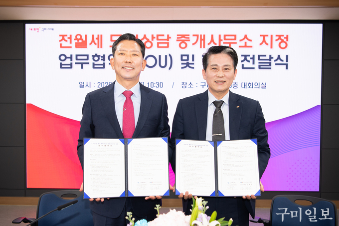 구미시는 3월 30일 시청 대회의실에서 한국공인중개사협회 구미시지회와 「전‧월세 계약 모범상담 중개사무소 지정」 업무협약을 체결했다. 최근 전세사기 등 부동산 거래 피해가 증가하는 상황에서, 민·관 협력을 통해 사전 예방 중심의 대응체계를 구축하기 위한 조치다.