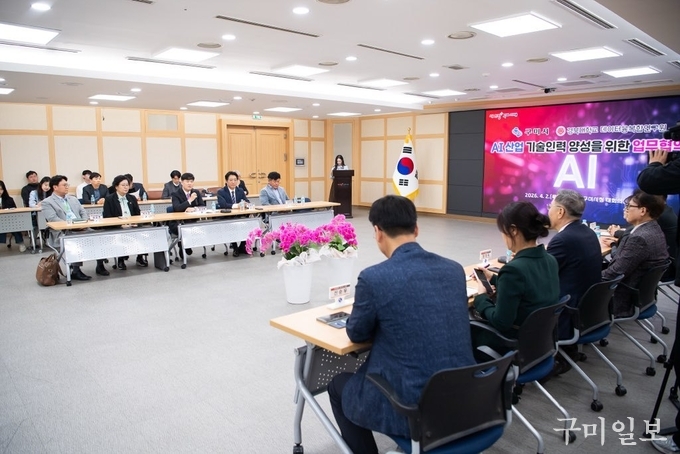 김장호 구미시장은 “이번 협약은 우리 시 기업들에게는 준비된 AI 실무 인재를, 지역 청년들에게는 미래를 설계할 소중한 기회를 연결하는 든든한 가교가 될 것”이라며, “구미의 미래를 이끌어갈 청년들의 성장이 곧 우리 산단의 경쟁력인 만큼, 인재와 기업이 함께 도약하는 역동적인 산업 도시를 완성하겠다”고 강조했다.