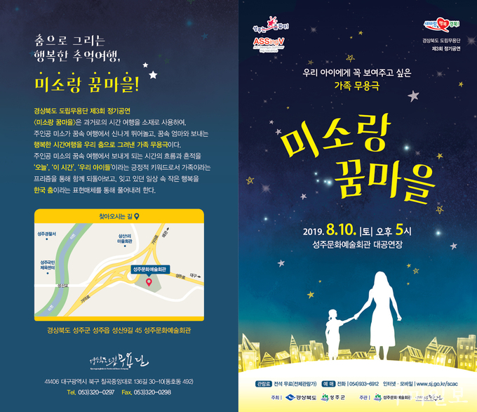 공연에 대한 자세한 내용은 도 문화예술과(054-880-3126)나 도립무용단(053-320-0297)으로 문의하면 된다.