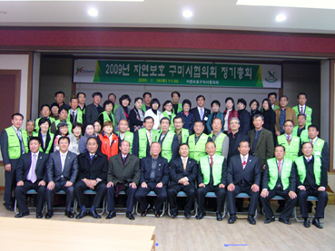 이번 정기총회에서는 김태근 회장을 비롯하여 시협의회원, 읍면동회장 등 60여명이 참석한 가운데 읍면동신임회장 인준서 및 신입회원 위촉장 수여, 2008년 사업 및 결산보고, 2009년 사업계획 및 예산(안)심의 순으로 진행되었다. 김태근 자연보호구미시협의회장은 인사말을 통해 자연보호운동 발상지 구미의 명성에 맞게 자연보호운동 활성화를 위해 최선을 다하겠다며 회원들의 적극적인 협조와 참여를 부탁하였으며, 강재용 자치행정국장은 회원들의 노고를 격려하고 저탄소 녹색성장을 통해 청정 환경이 국가 경쟁력인 만큼 명품 YES Green구미 건설에 힘써줄 것을 부탁하면서 어려운 경제위기를 극복하여 시민과 기업이 함께 잘사는 구미성공시대를 함께 열어가자고 당부하였다. |