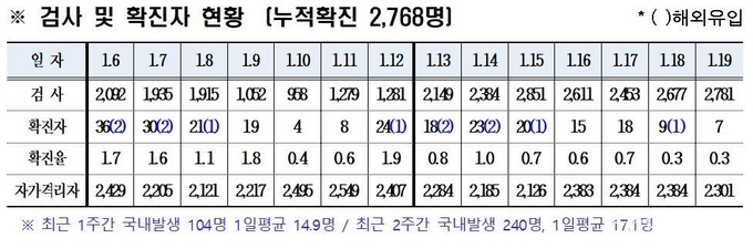 경상북도에서는 1월 20일(수) 0시 기준 코로나19 국내감염 7명이 신규 발생하였다.