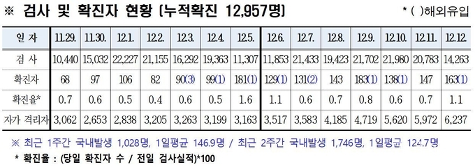경상북도에서는 12월 13일(월) 0시 기준 코로나19 확진자 국내감염 162명, 해외감염 1명이 신규 발생했다.