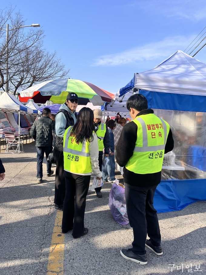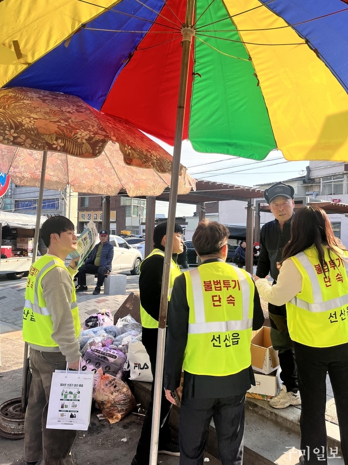 선산읍은 불법투기 단속을 강화하기 위해 전담 기간제근로자와 환경관리원으로 구성된 단속반을 편성하고, 선산5일장, 원룸 밀집지역, 공한지, 주택가 뒷골목 등 주요 상습투기 지역에서 주야간 불시 단속을 진행한다. 또 CCTV 감시 카메라를 점진적으로 추가 설치해 단속 사각지대를 최소화할 계획이다.
