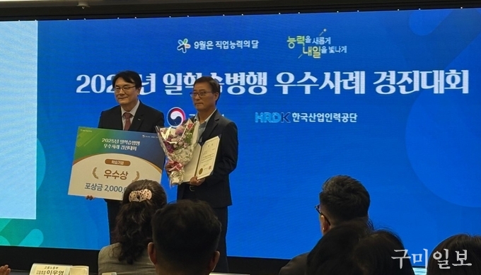 한국산업인력공단 경북서부지사(지사장 장훈)는 지난 9.25(목) 코엑스 마곡에 열린 고용노동부와 한국산업인력공단 주관 사업주훈련 및 일학습병행 우수사례 경진대회에서 구미지역 기업 두 곳이 나란히 우수기업으로 선정되는 쾌거를 거두었다고 밝혔다.