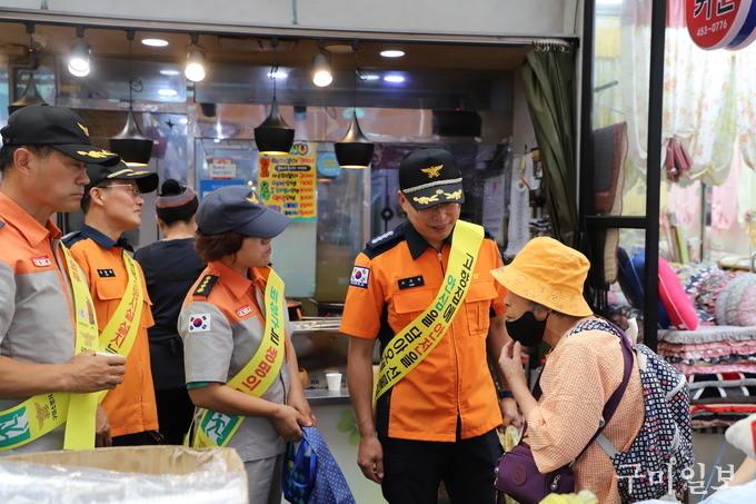 이번 행사에는 구미소방서장과 직원, 원평의용소방대 등 40여 명이 참여해 전통시장 장보기를 통해 지역경제 활성화에 동참하고, 상인과 시민을 대상으로 ▲주택용 소방시설(소화기, 단독경보형감지기) 설치와 방화문 닫기 홍보 ▲화기 취급 시 안전수칙 ▲초기 대응의 중요성 등을 알리며 안전 의식을 높였다.