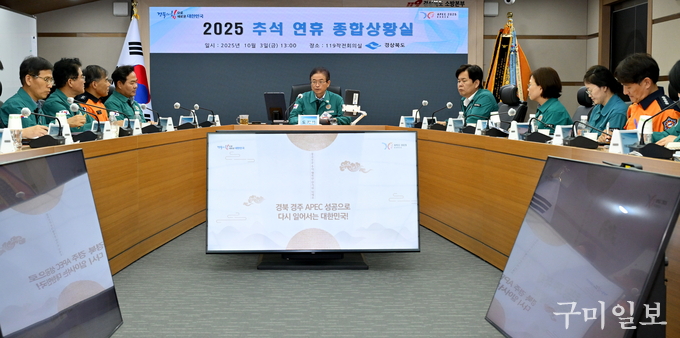 이철우 경상북도지사는 추석 연휴 첫날인 10월 3일 경북도 종합상황실과 119종합상황실을 방문해 연휴 기간 비상근무에 임하는 근무자들을 격려하고 추석 명절 대응 상황을 점검했다.