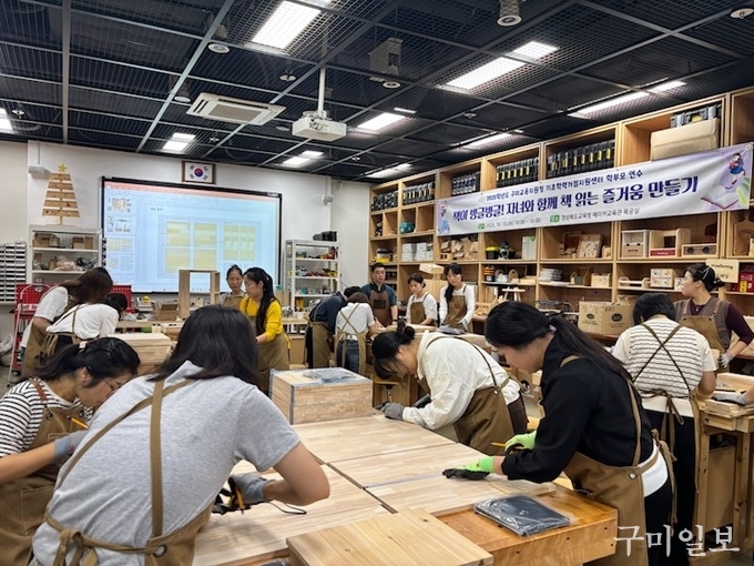 경상북도구미교육지원청(교육장 민병도) 기초학력거점지원센터는 10월 15일(수) 경북 구미 지역 학습지원대상학생 학부모 및 초등 1학년 학부모 중 희망자 48명을 대상으로 목공예 학부모 연수를 실시하였다.