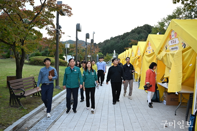 김천시장은 23일 오후 축제 관계부서와 함께 김밥축제 행사장인 직지문화공원과 사명대사공원 일대를 방문해 행사 진행 사항과 안전 대책을 보고 받고, 무대와 시설물, 관람객 동선 등을 확인했다.