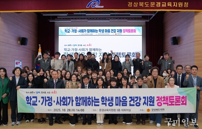김경숙 의원(더불어민주당)은 10월 28일(화) 문경교육지원청 대회의실에서 열린 ‘학교·가정·사회가 함께하는 학생 마음 건강 지원' 정책토론회'에서 좌장을 맡아 경북 학생 마음 건강 증진을 위한 방안을 제시했다.