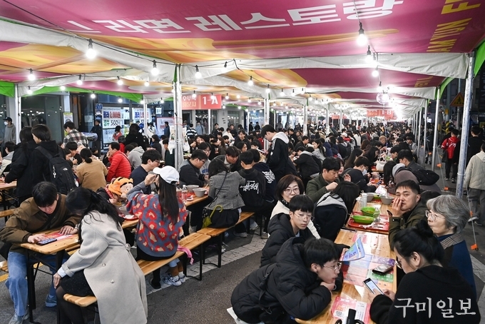 올해로 4회째를 맞은 이번 축제는 ‘오리지널(Original)’을 주제로 열렸다. 475m 길이의 ‘세상에서 가장 긴 라면레스토랑’을 중심으로 구미 도심 전체가 라면 거리로 변신했다. 전국 곳곳에서 유사 축제가 열리고 있지만, 원조 도시 구미의 존재감은 여전히 독보적이었다.