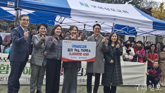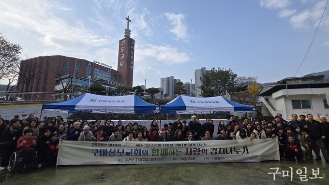 구미시는 11월 25일 구미상모교회(담임목사 조준환)에서 신도 및 자원봉사자 150여 명이 참여한 가운데 ‘사랑의 김장나누기’ 행사를 열고, 정성껏 담근 김장김치 5,000kg(3천만 원 상당)을 전달받았다.