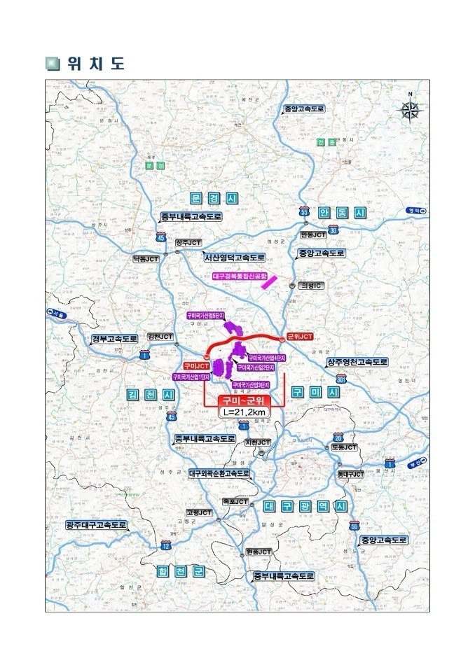 이 사업은 구미 국가산업단지와 경북 내륙을 연결해 지역 산업과 물류 경쟁력을 강화시키면서 기존 53분 소요 구간이 34분으로 약 20분 단축돼 인접 산업벨트 간 이동성과 생산성이 크게 향상될 전망으로, 구미국가산단·의성·군위가 연계되어 ▲물류비 절감 ▲산업단지 활성화 ▲인구 유입 촉진 ▲경기·고용 개선 등 지역균형발전의 파급 효과도 기대된다.
