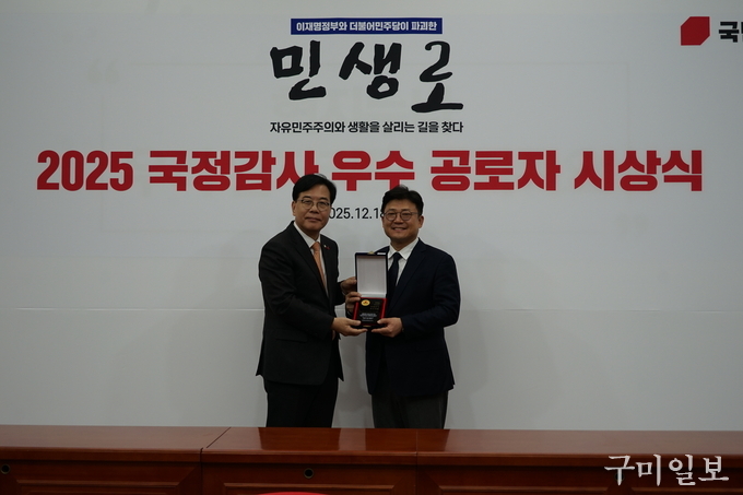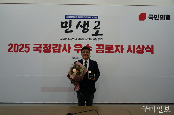 강명구 국회의원(구미을)이 국민의힘에서 선정한 '2025 국정감사 우수국회의원상'을 수상하며 2년 연속 수상이라는 영예를 안았다.