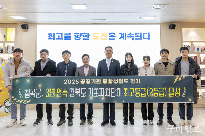 칠곡군은 29일 국민권익위원회가 주관한 ‘2025년도 공공기관 종합청렴도 평가’에서 종합청렴도 2등급을 달성했다고 밝혔다. 이는 경북도 내 기초자치단체 중 최고 등급에 해당하며, 칠곡군은 3년 연속 같은 등급을 유지하게 됐다.