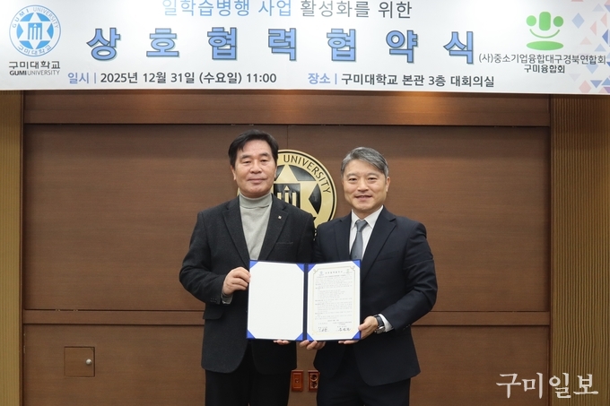 구미대학교(총장 이승환)가 (사)중소기업융합대구경북연합회 구미융합회(이하 구미융합회)와 상호협력 체계를 구축하는 협약을 체결했다고 5일 밝혔다.