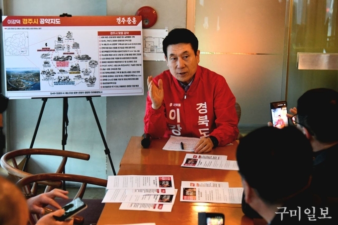 이강덕 국민의힘 경북도지사 예비후보는 9일 경주시에서 기자간담회를 열고 경주 건천을 SMR(소형모듈원자로) 가속기와 미래차 산업이 결합된 경제자유구역으로 신규 지정하겠다는 구상을 내놨다.