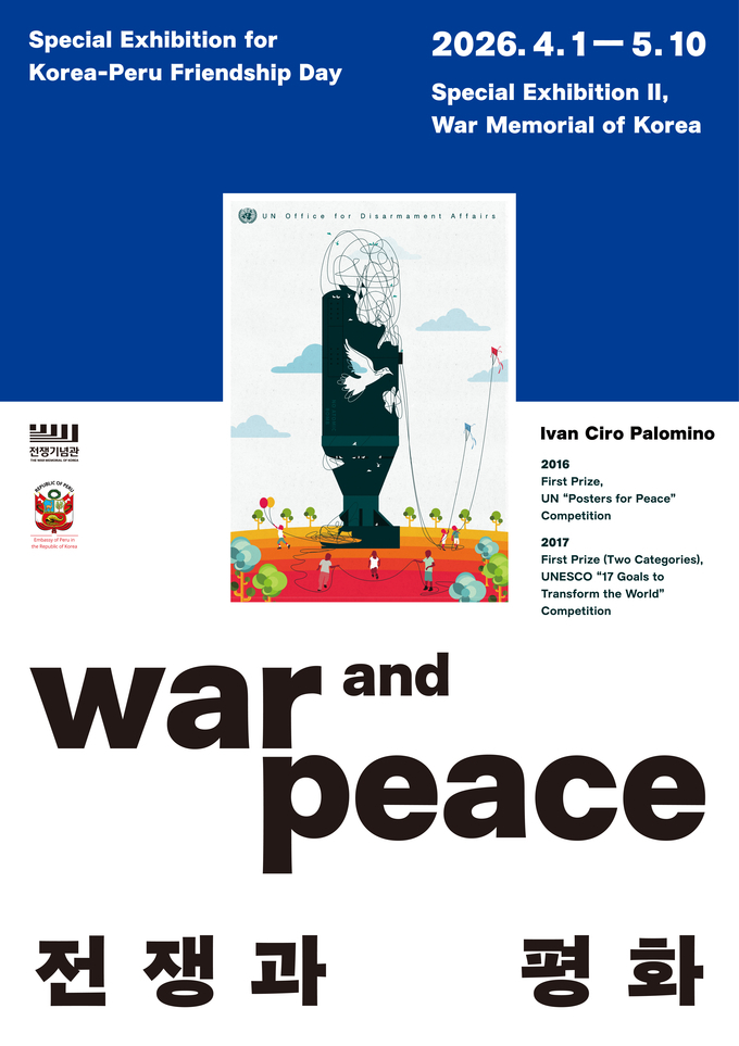 사업회와 주한페루대사관이 공동으로 주최한 <전쟁과 평화> 전시는 5월 10일까지 전쟁기념관 3층 기획전시실에서 누구나 무료로 관람할 수 있다.